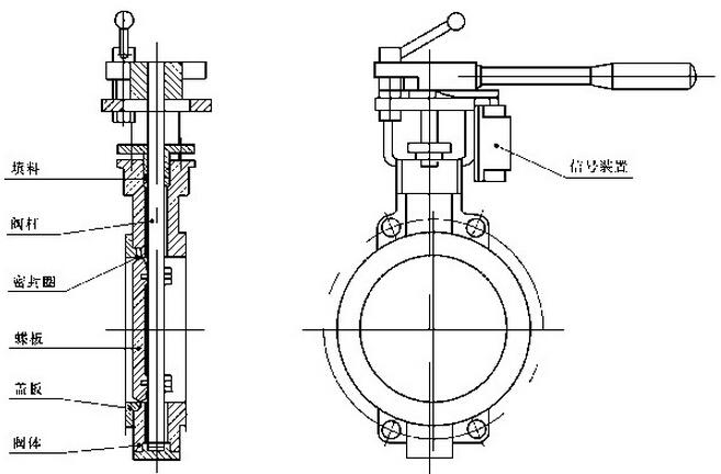 蝶閥根據(jù)連接形式的不同能分成法蘭式蝶閥和對夾式蝶閥;按照結構形式可以分為中線蝶閥和偏心蝶閥。蝶閥的結構非常的簡單,有閥體、閥桿、閥座、蝶板和傳動機構組成,常見的傳動方式有手柄、渦輪、氣動、電動。下面我們來針對蝶閥的結構圖來對蝶閥做一個解析。