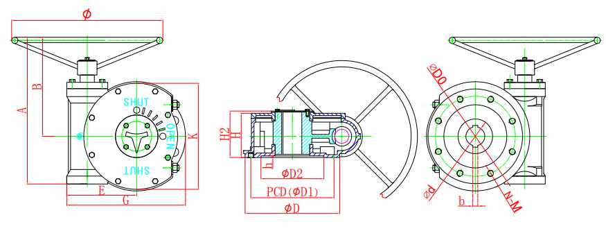 該系列蝸輪箱適用環(huán)境廣、功能全面、形式多樣(有手輪式、手輪帶鎖式、鏈輪式等),產(chǎn)品共有9種型號(hào)。
